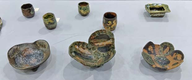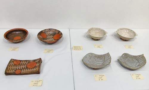 「型押文刷毛目皿」 「型押文デザイン皿」
